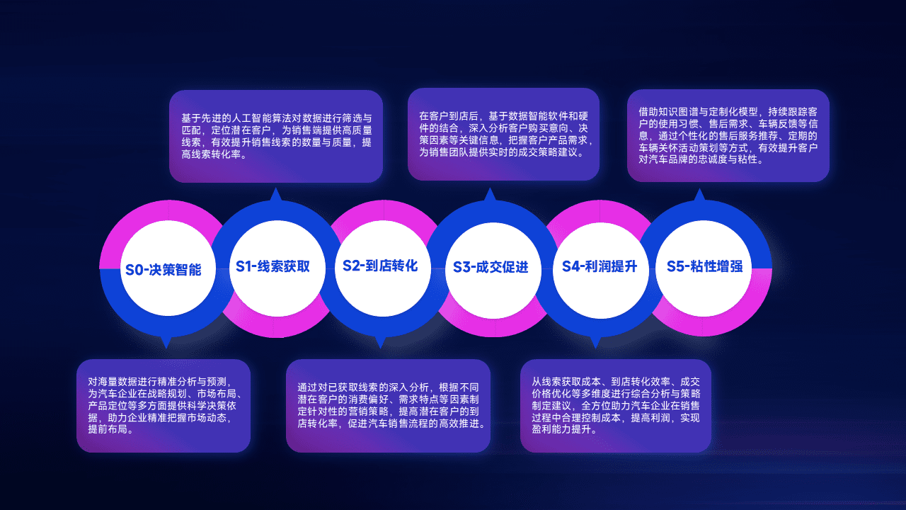 通过拓宽潜在客户来源、、、、优化线索分配并提高到店转化率,,以增强销售效率。。。。同时,,利用线索数据不断优化分析模型,,,有效提升转化率,,,,扩大营销影响力。。。